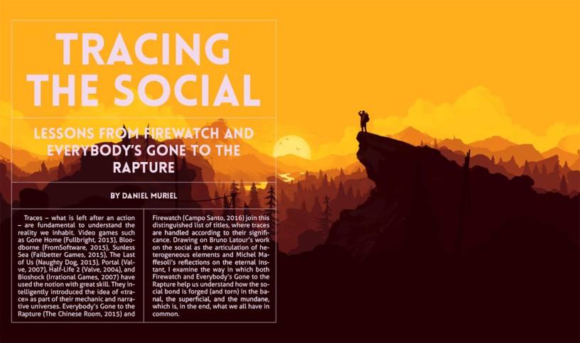 He publicado el artículo “Tracing the Social. Lessons from Firewatch and Everybody’s Gone to the Rapture” en Presura, número 23.